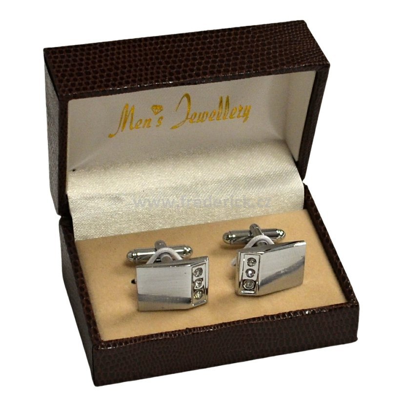 Manžetové knoflíčky - vzor MK98 - čtvercový tvar. Manžetové knoflíčky lesklé stříbrné barvy s krásnými kamínky.
