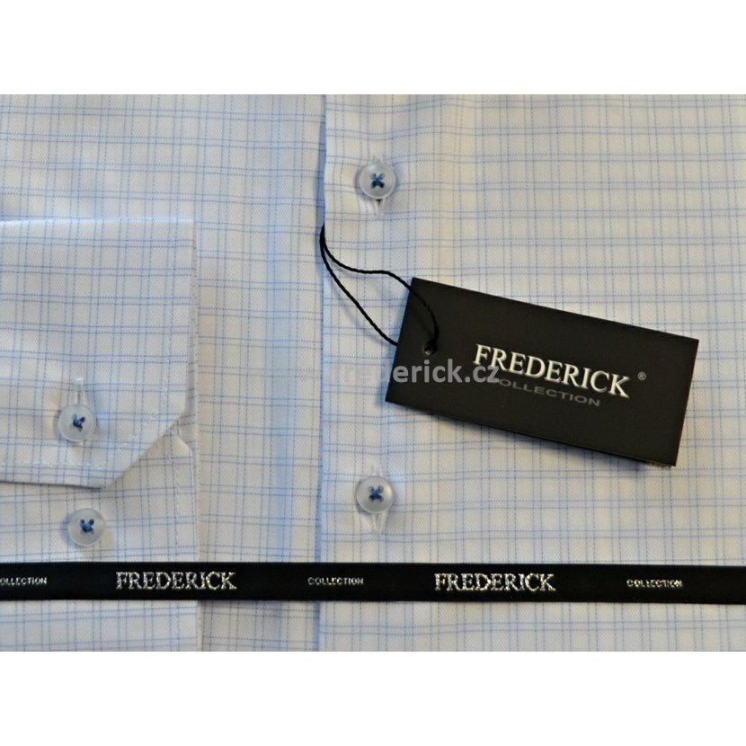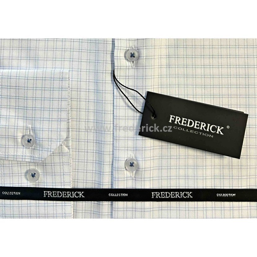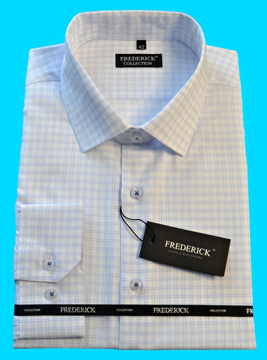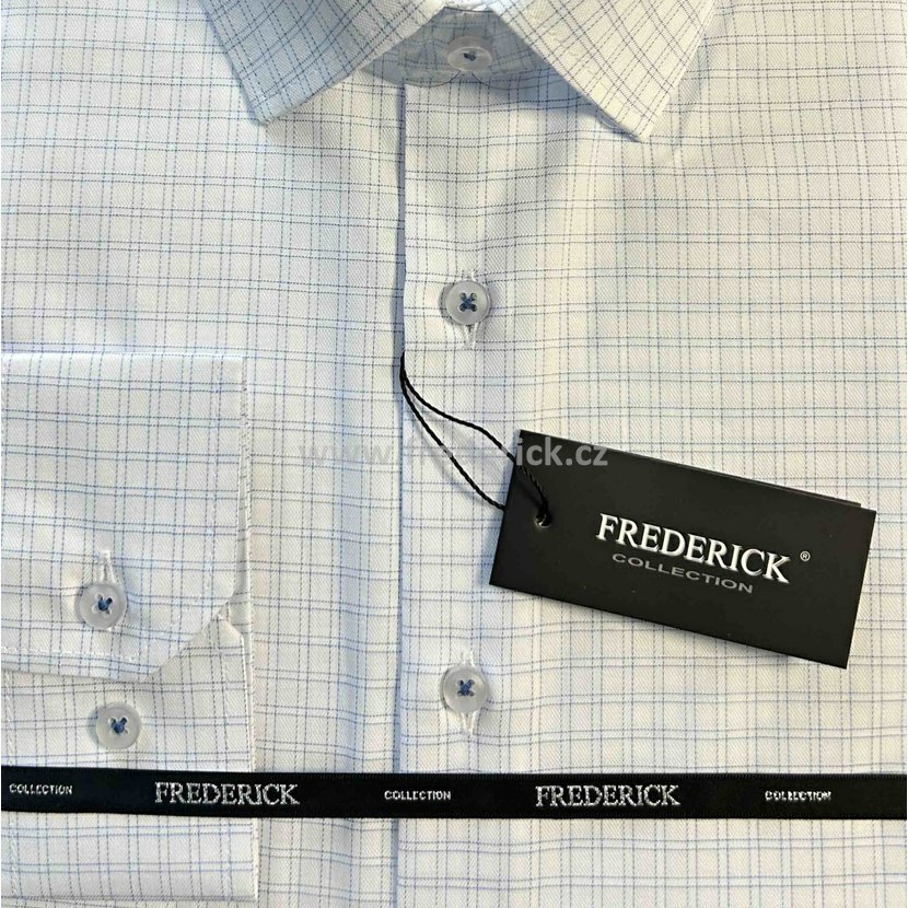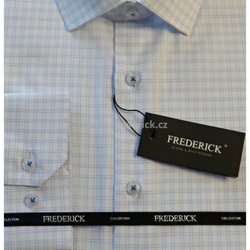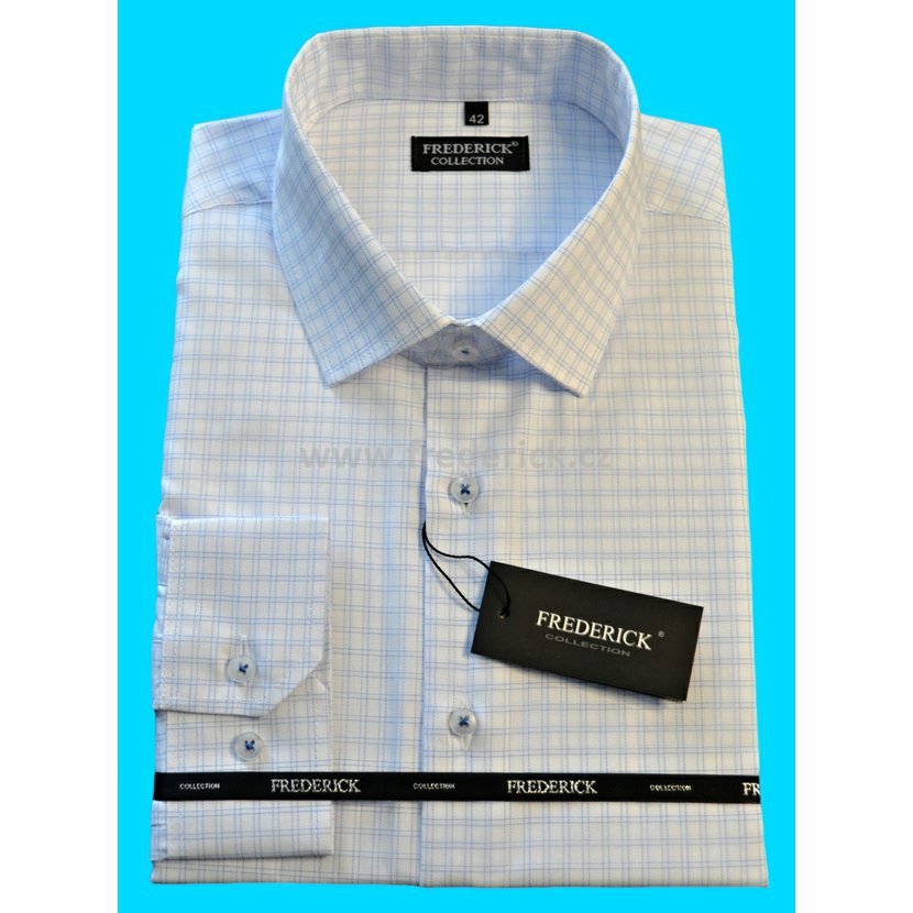 Příjemná pánská košile s dlouhým rukávem bílé barvy s jemným kárem světlé modré barvy.