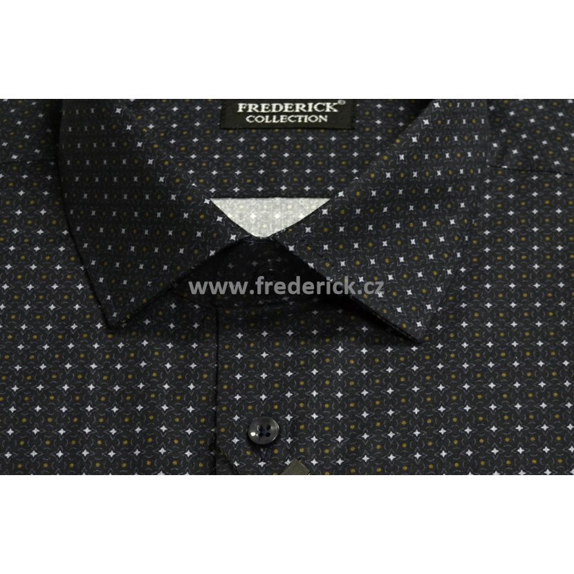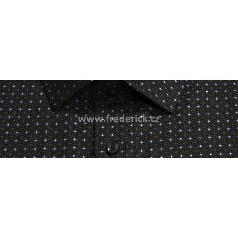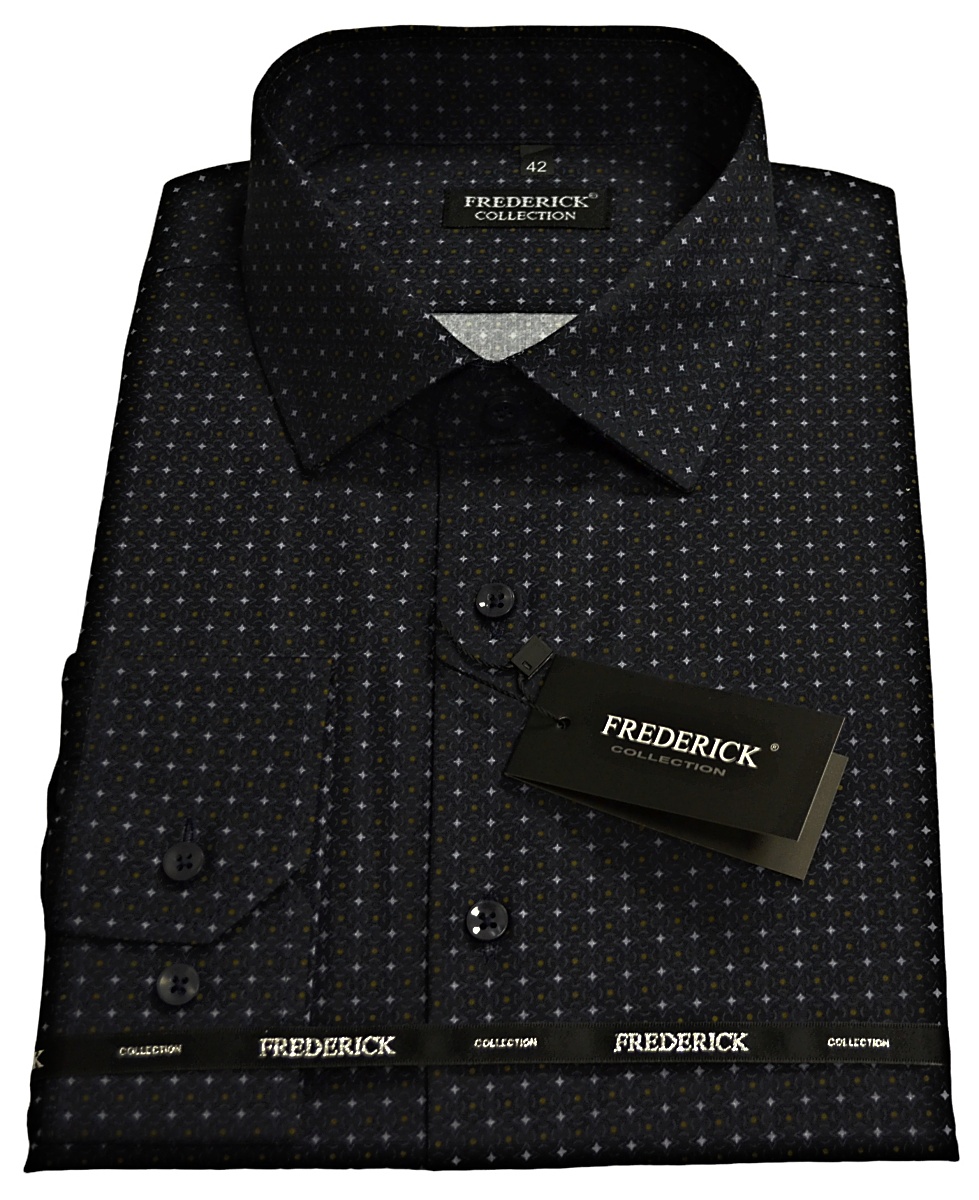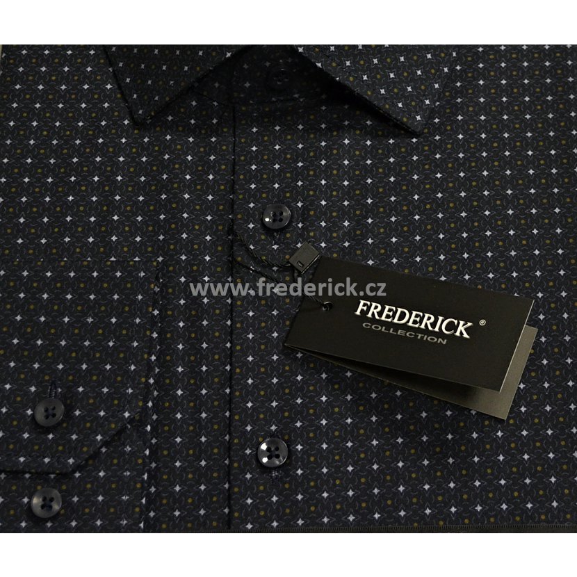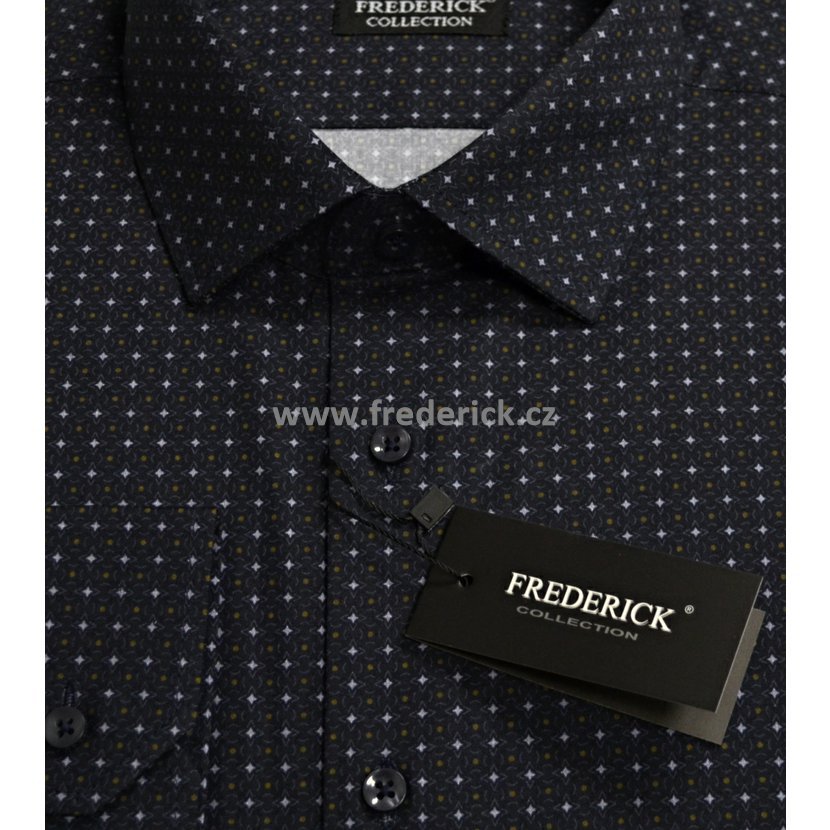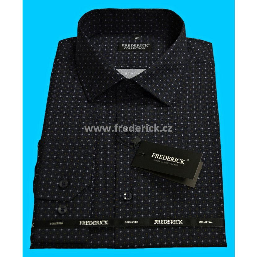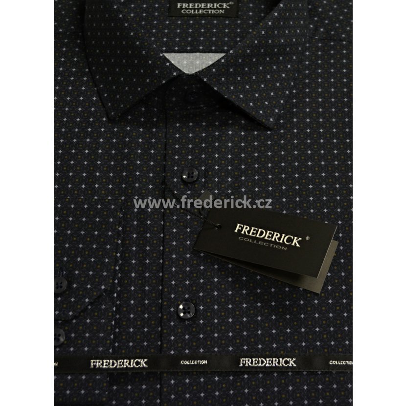 Luxusní pánská košile s dlouhým rukávem, elegantní tmavě modré barvy s krásným, jemným vzorem světle modré a světlé bronzové barvy v látce což úžasně souzní s barvou košile.