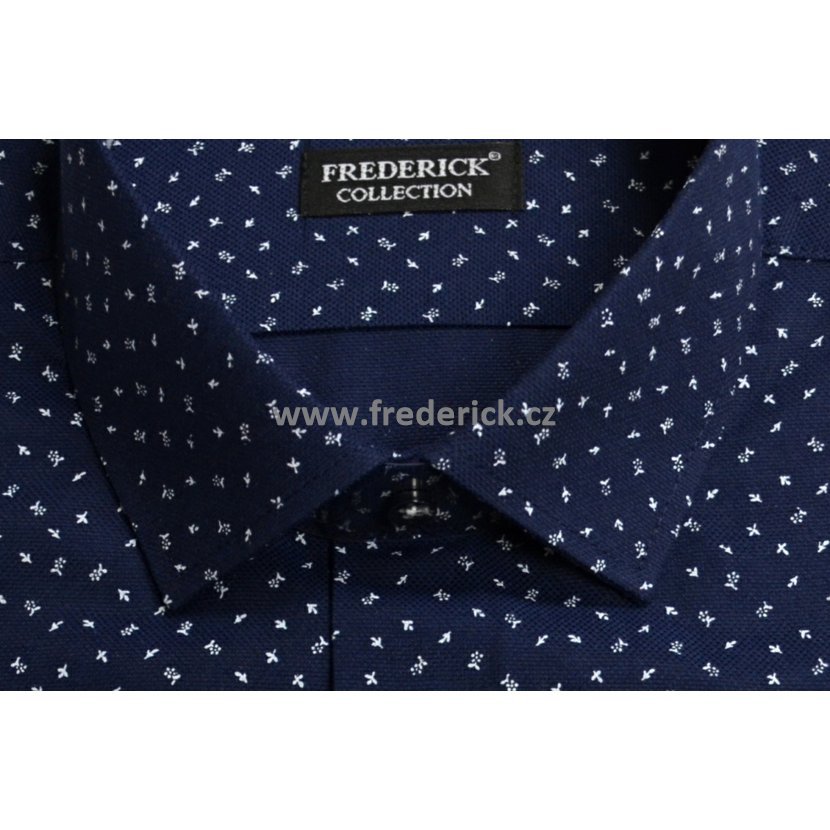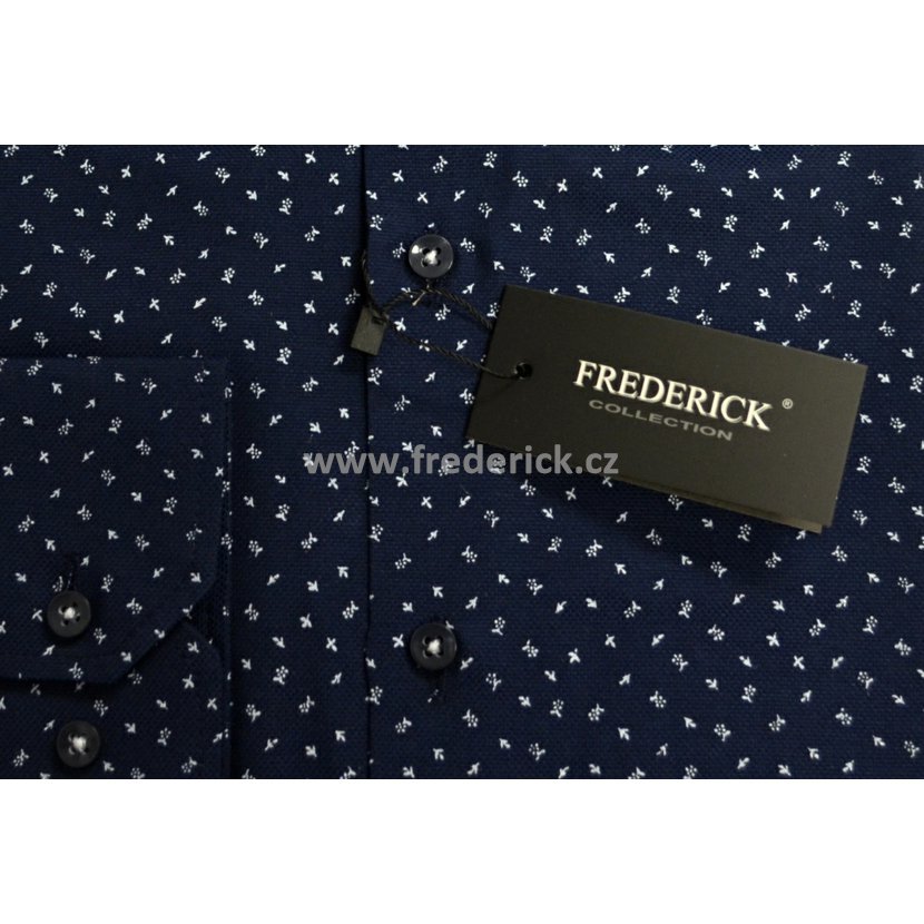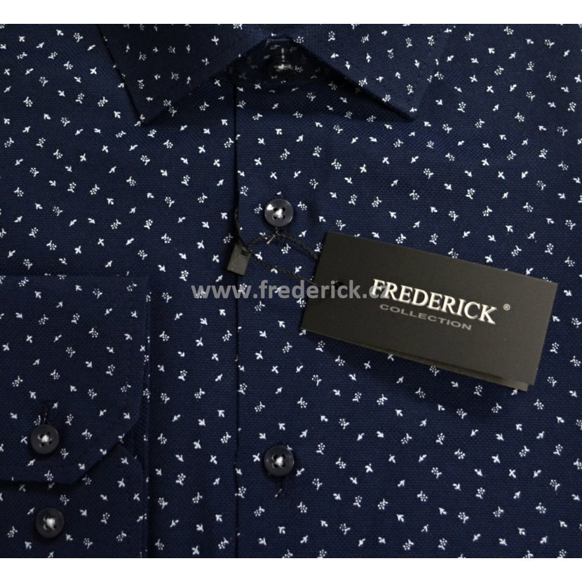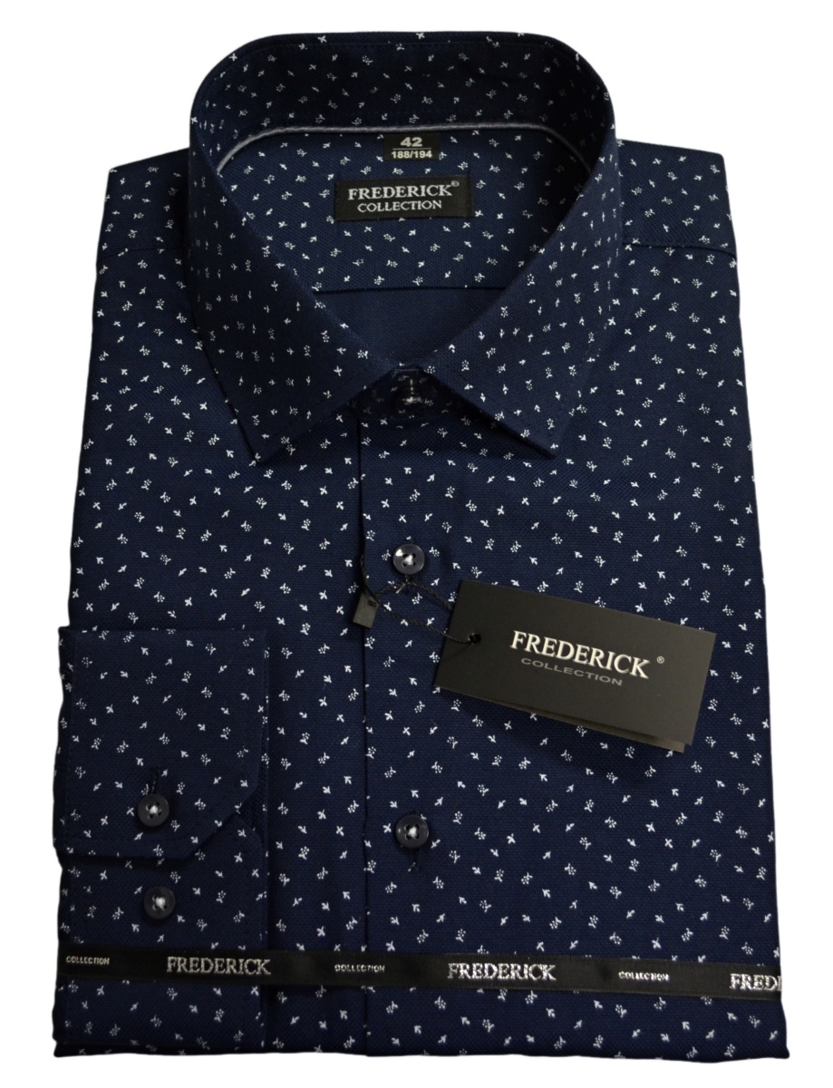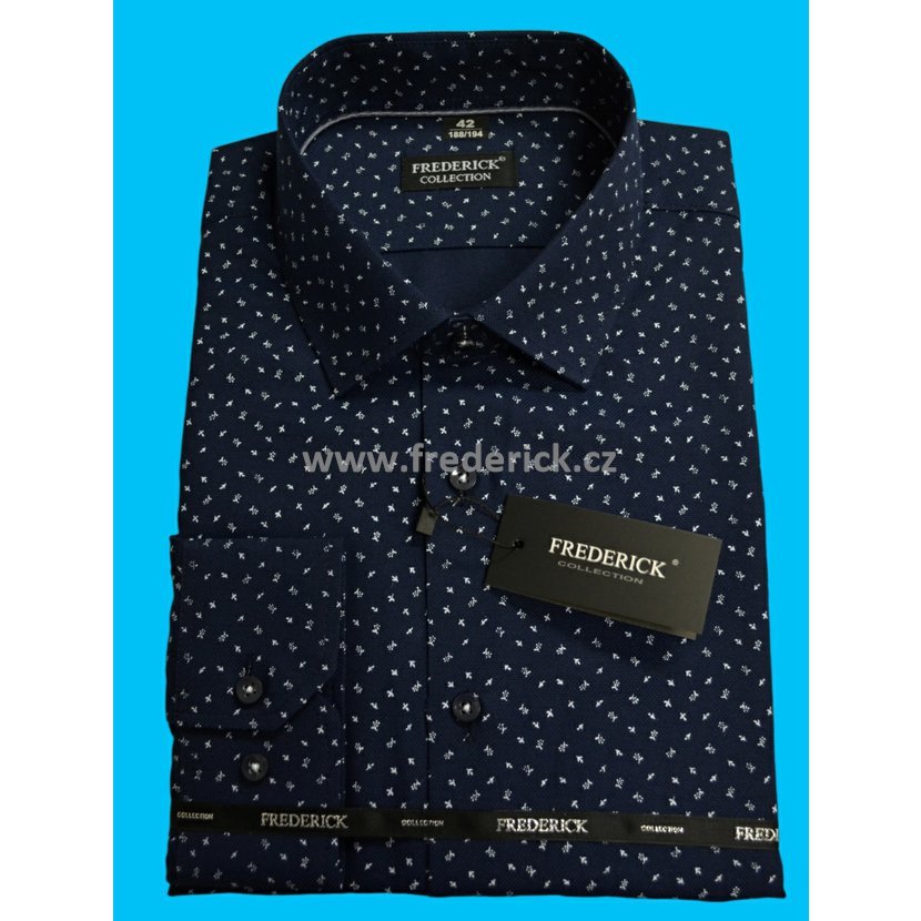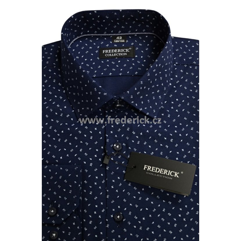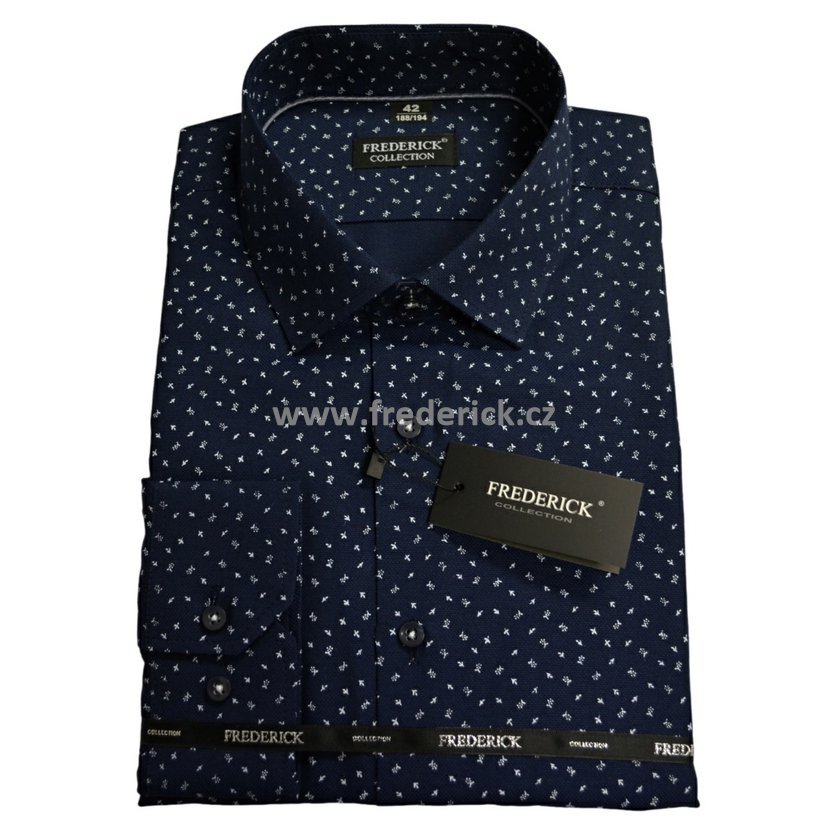 Pánská košile s dlouhým rukávem s prodlouženou délkou rukávu na výšku 188/194 cm tmavě modré barvy s příjemným vzorem bílé barvy v látce.