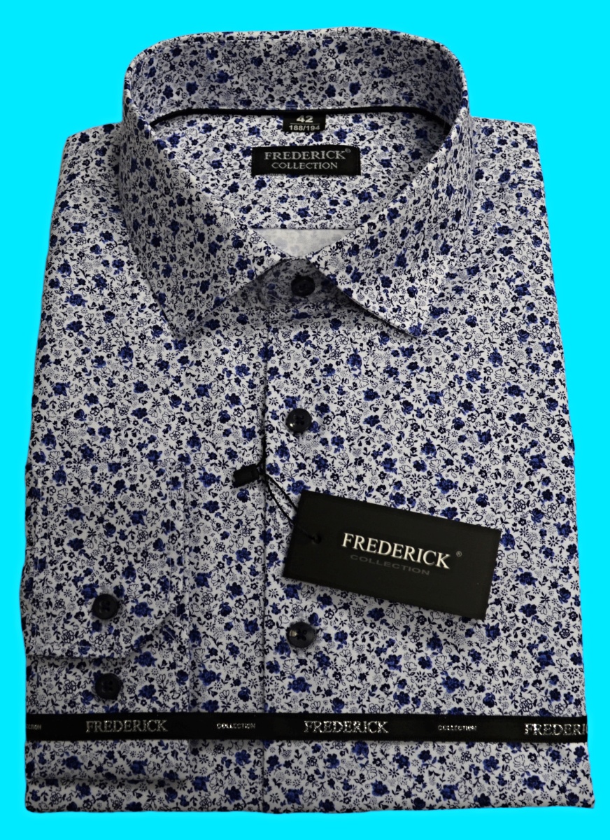 Elegantní pánská košile s dlouhým rukávem bílé barvy s krásným vzorem modrých květů pro muže vyššího vzrůstu 188/194 cm.