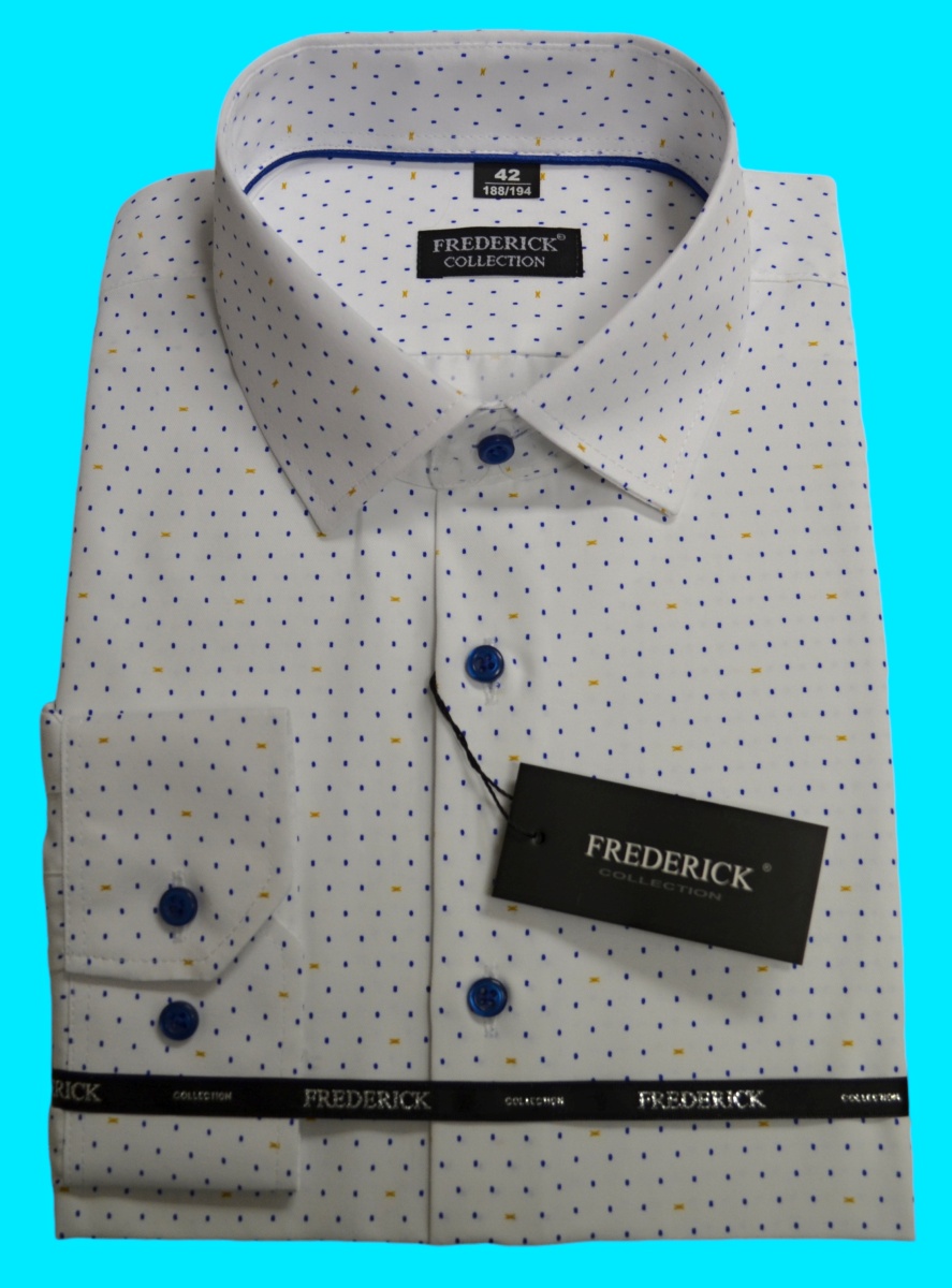 Pánská košile s dlouhým rukávem s prodlouženou délkou rukávu na výšku 188/194 cm bílé barvy s příjemným vzorem modré zlaté, žluté barvy.