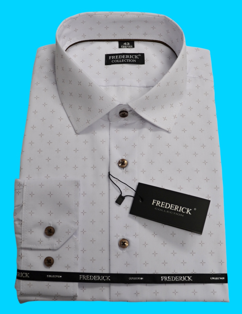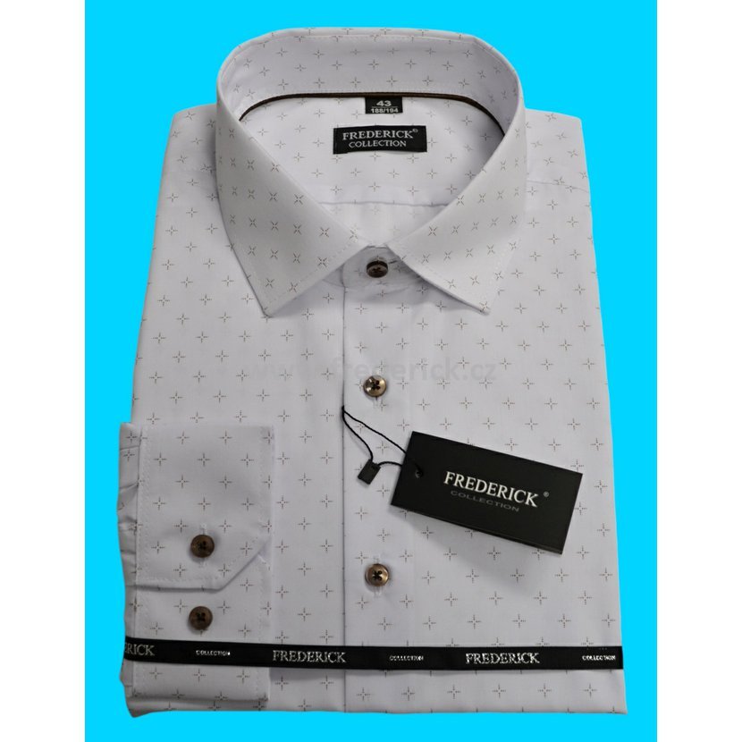Elegantní pánská košile s dlouhým rukávem bílé barvy s krásným vzorem bronzové, úžasné hnědé barvy pro muže vyššího vzrůstu 188/194 cm.