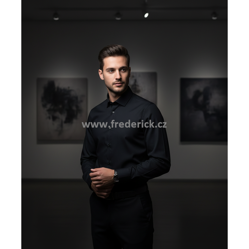 Pánská košile s dlouhým rukávem jednobarevná, černé barvy v módním střihu SLIM z velmi kvalitního materiálu.