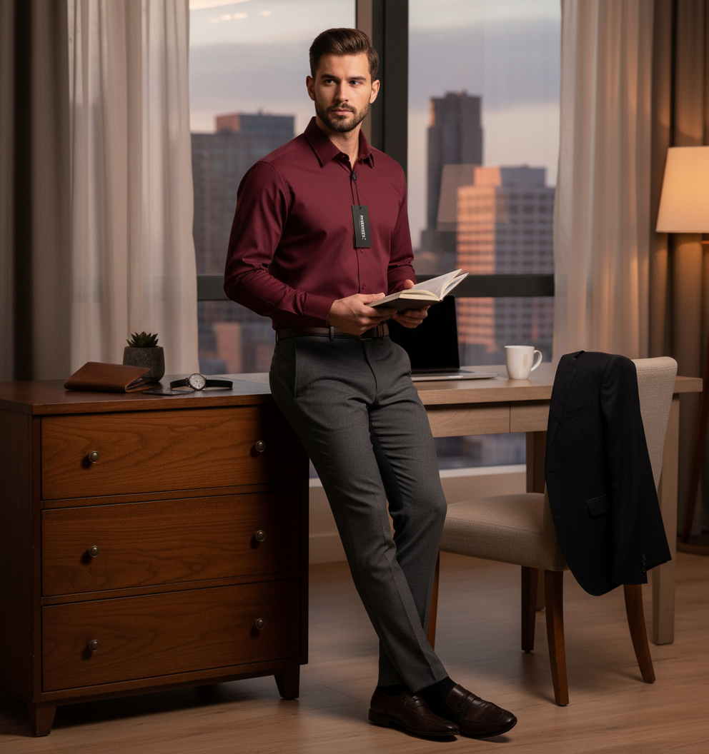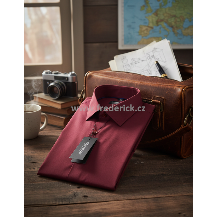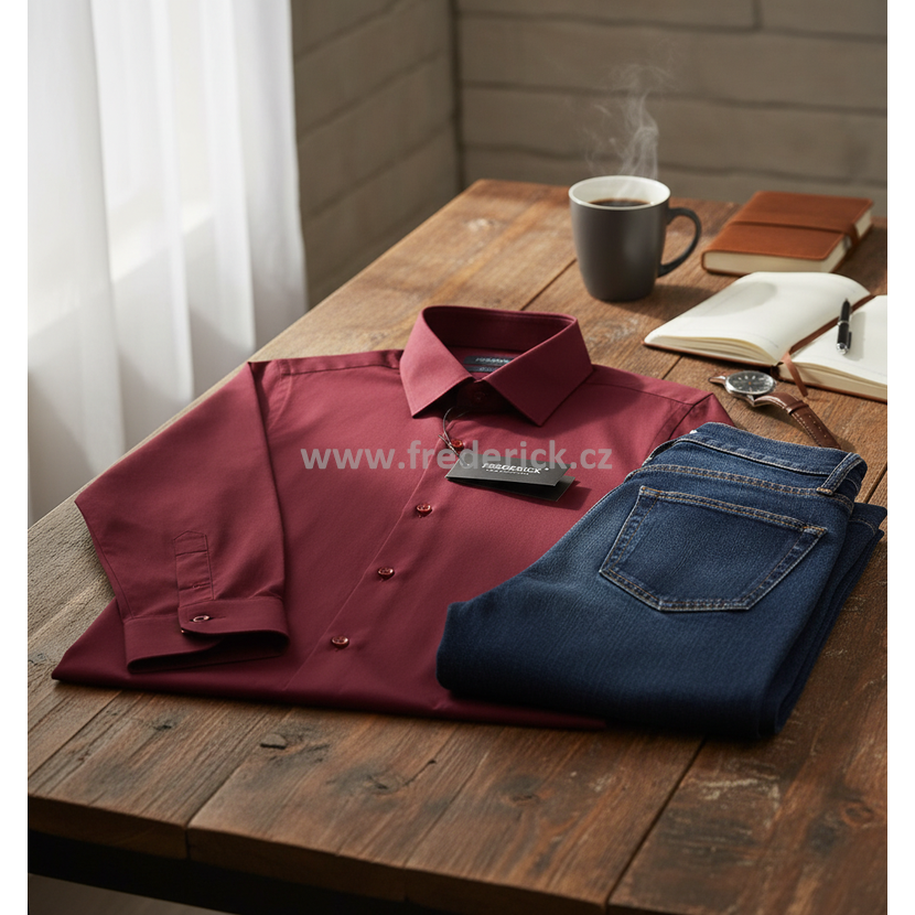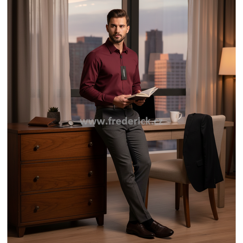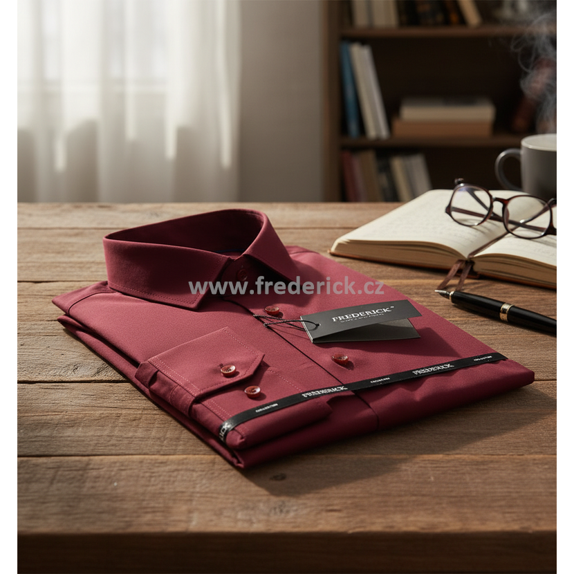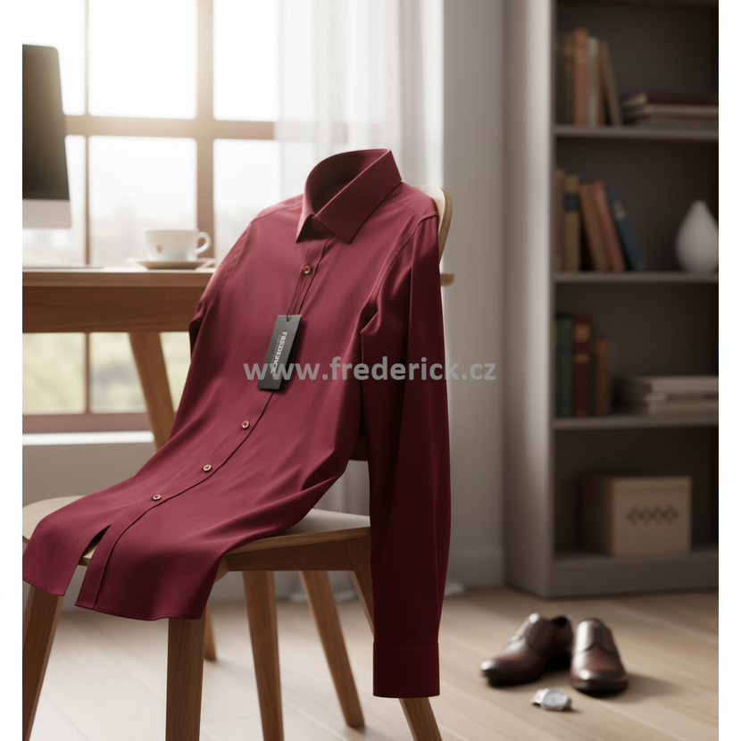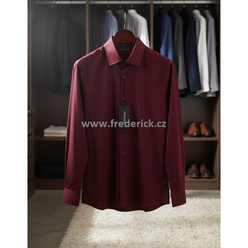 Luxusní, elegantní pánská košile s dlouhým rukávem vínové, bordó barvy.