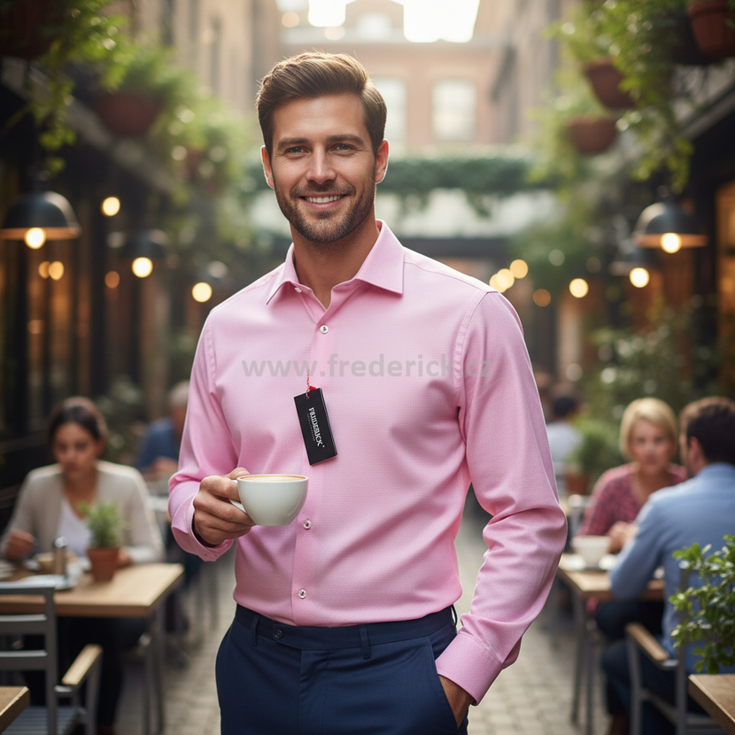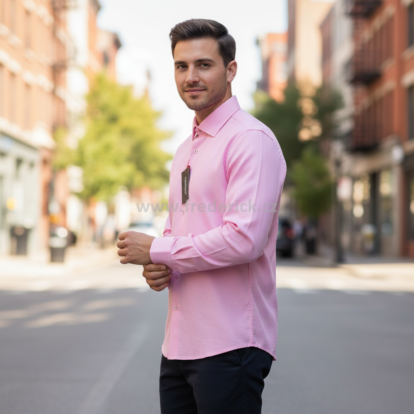 Elegantní, příjemná pánská košile s dlouhým rukávem pink, růžové barvy, která je vhodná pro muže všech věkových kategorii, pro všechny příležitosti.