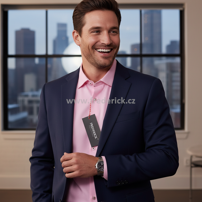 Tento vzor pánské košile ve střihu SLIM je bez kapsy na hrudi.