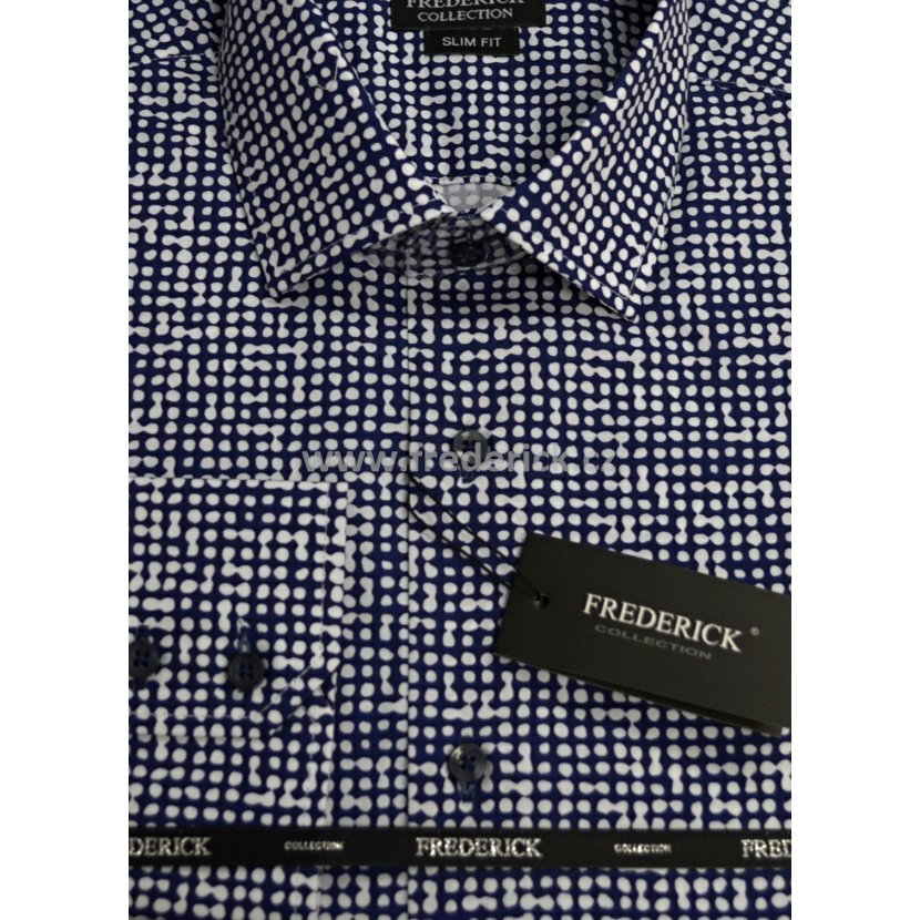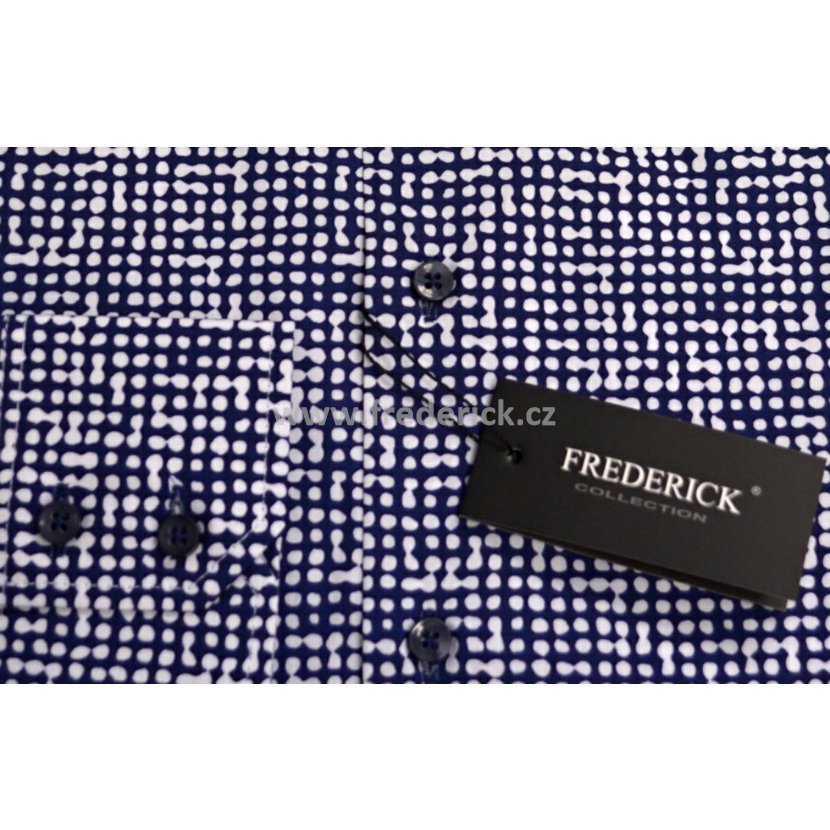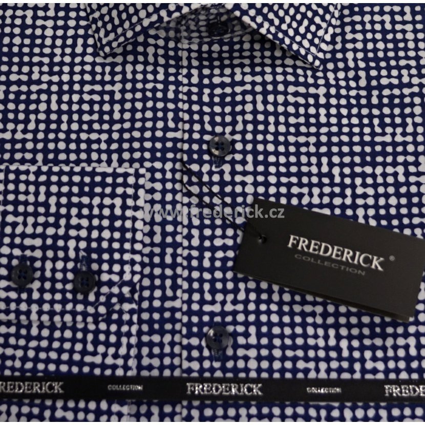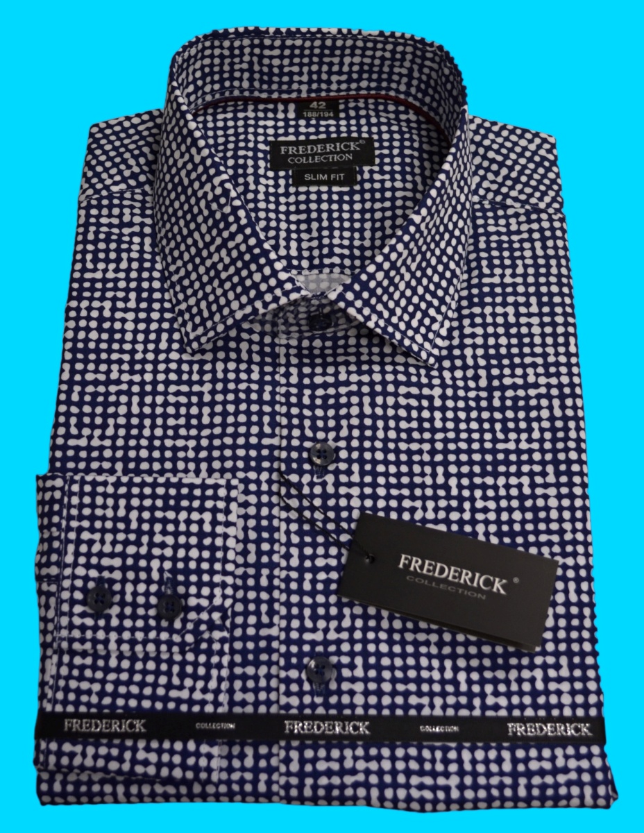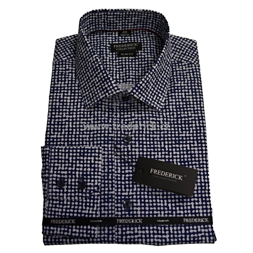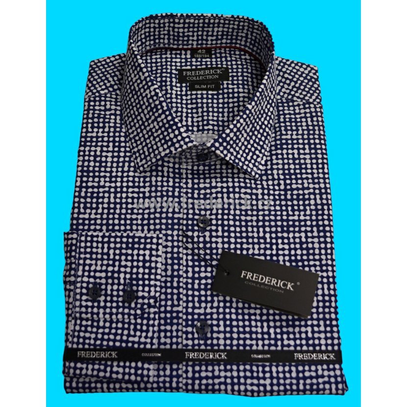 Kvalitní pánská košile s dlouhým rukávem s prodlouženou délkou rukávu na výšku 188/194 cm s příjemným, atraktivním vzorem tmavě modré a bílé barvy.