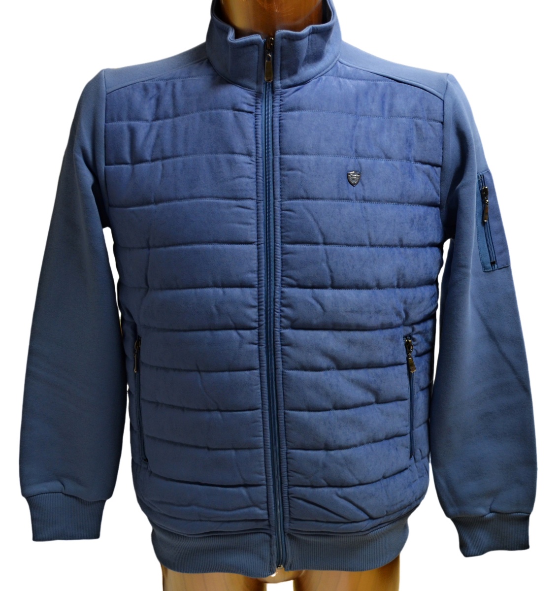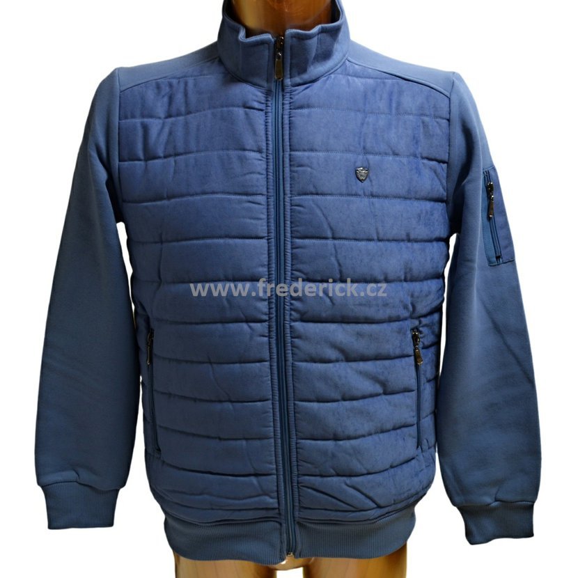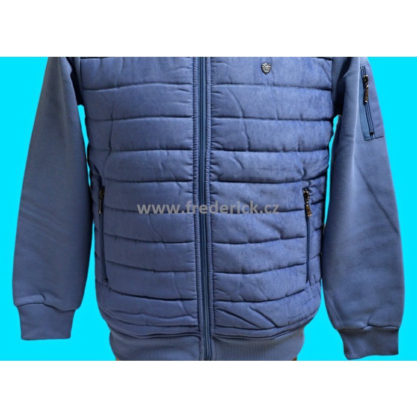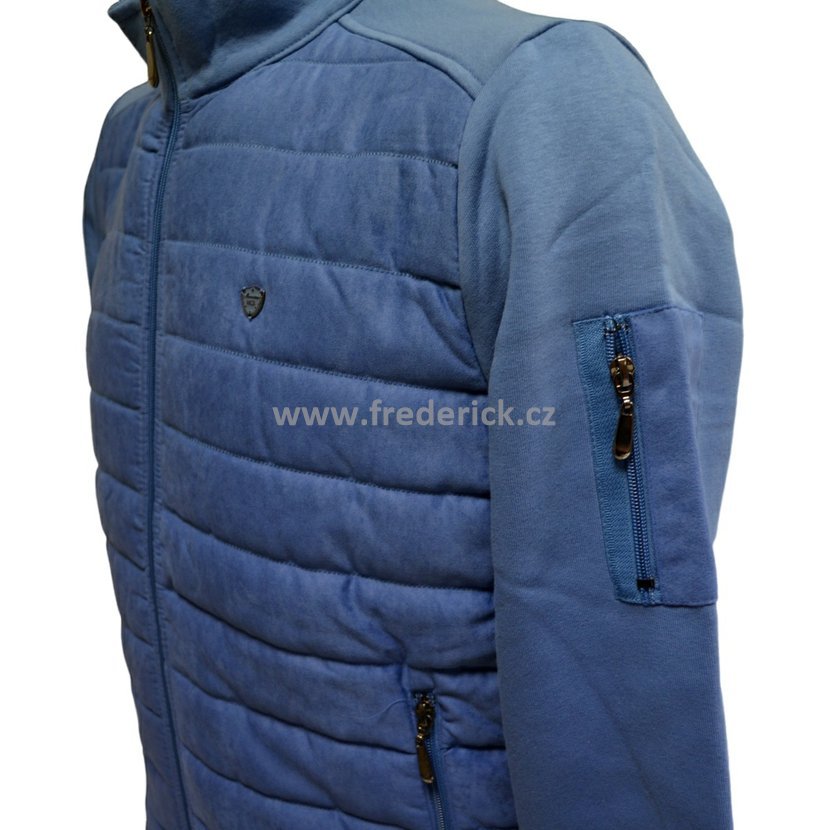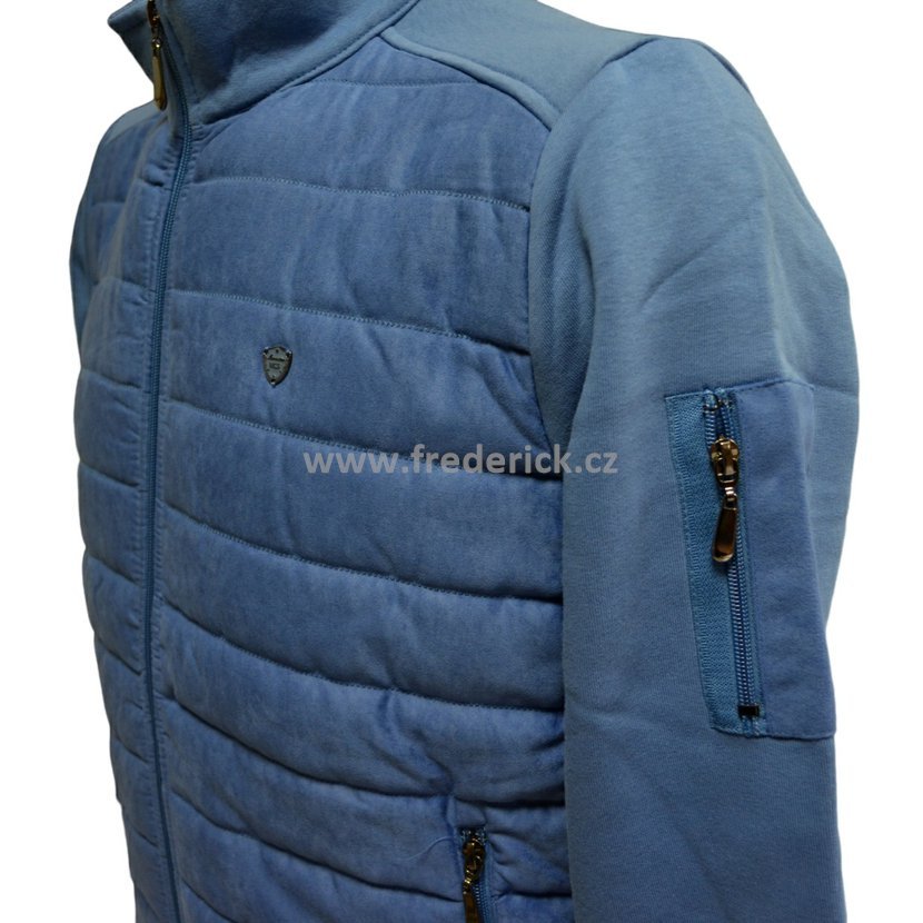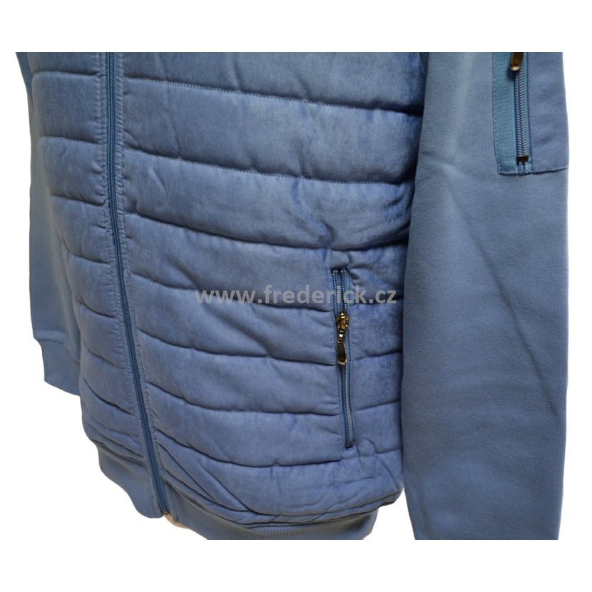 Moderní, pánská mikina modré barvy, jedinečností této mikiny je zip a s kapsami na boku také na zip.