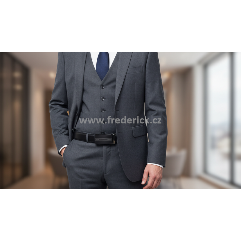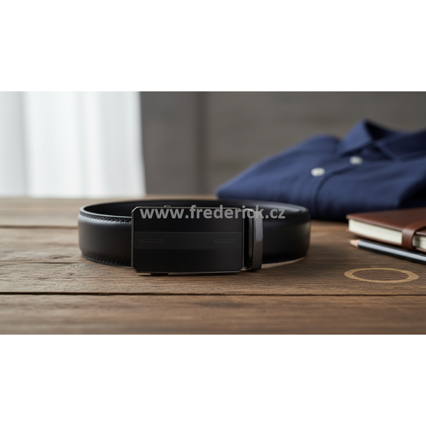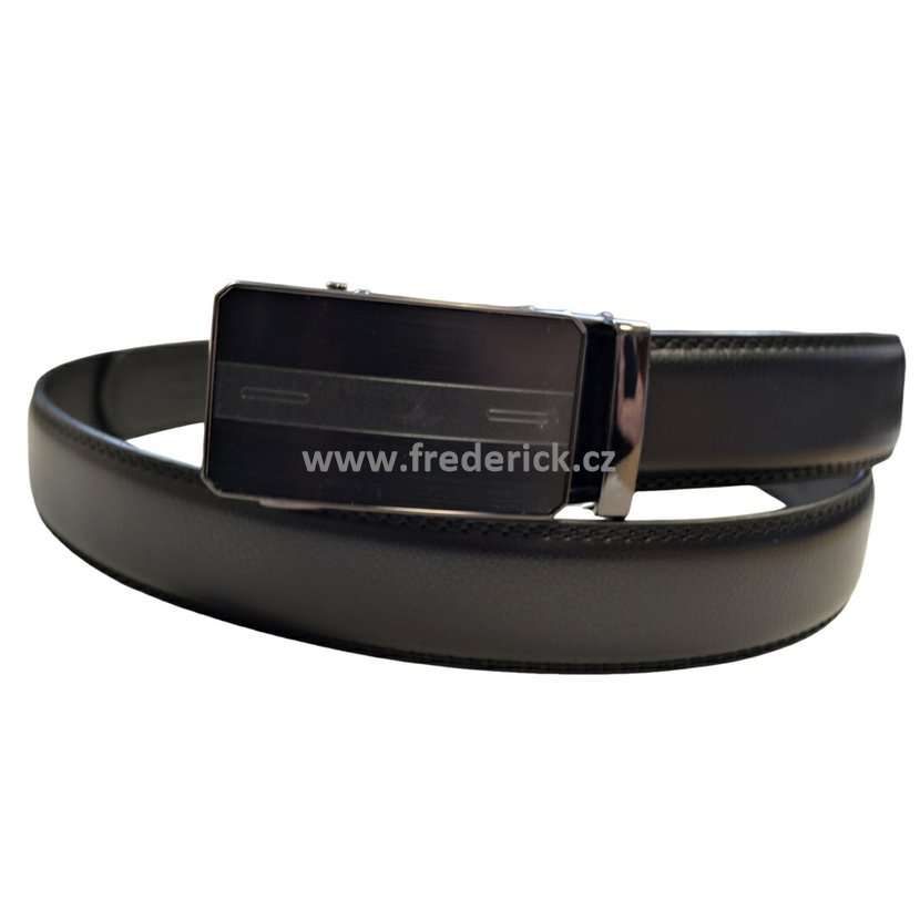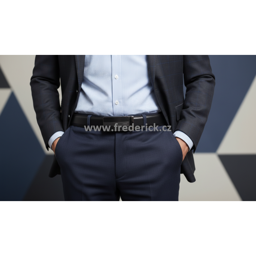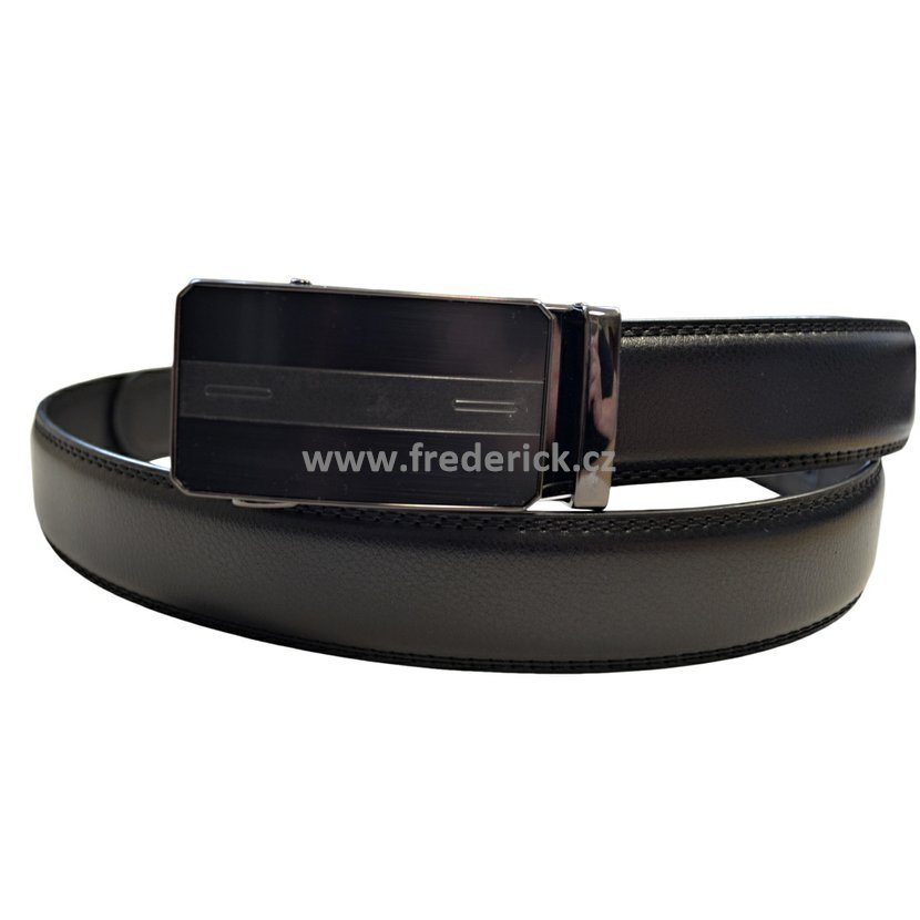 Elegantní pánský kožený opasek černé barvy s velmi kvalitní sponou s černým vzorem je vhodný pro muže všech věkových kategorii.