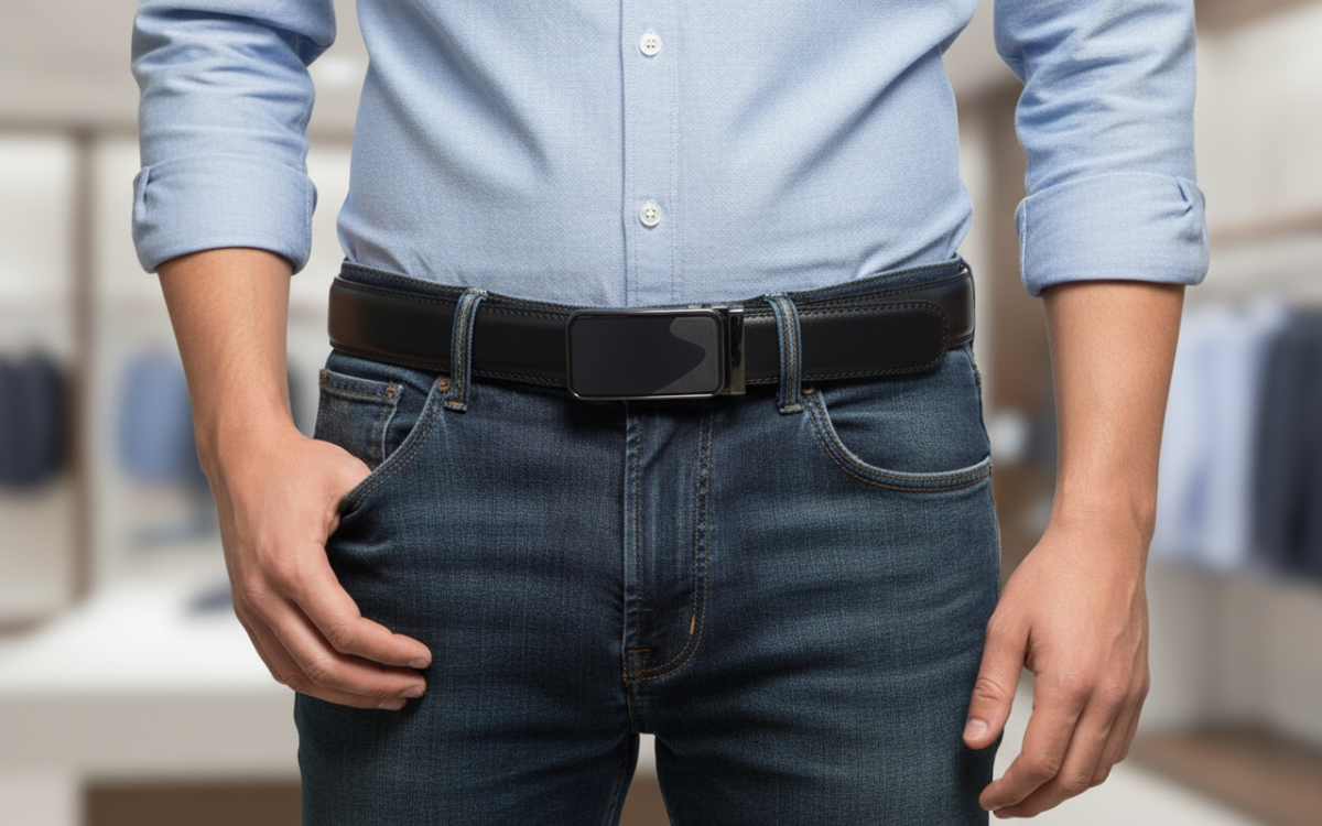 Pokud si nevíte rady s velikostí - pomocí krejčovského metru, který provlečete skrze poutka kalhot, si změřte obvod pasu a poté zvolte nejbližší vhodnou délku opasku.